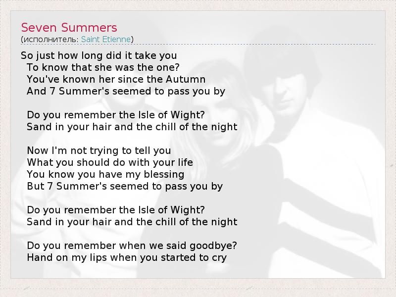 А как ты думаешь, о чем песня "Seven Summers" ?
