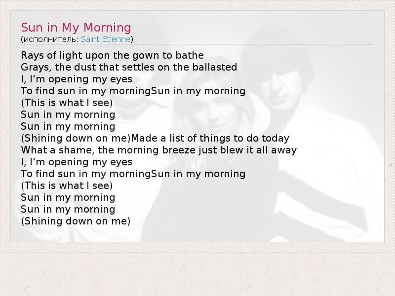 А как ты думаешь, о чем песня "Sun in My Morning" ?