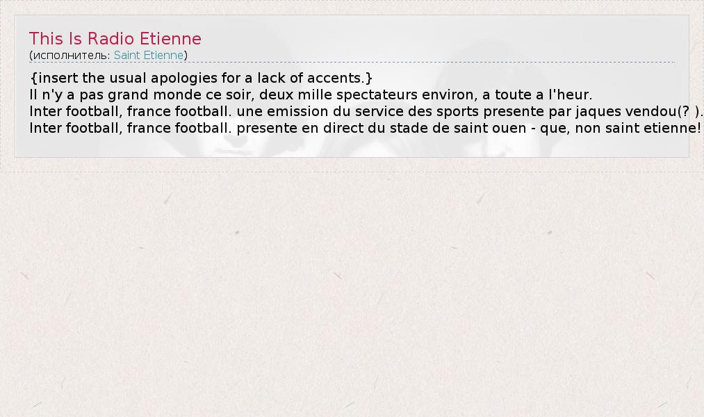 А как ты думаешь, о чем песня "This Is Radio Etienne" ?