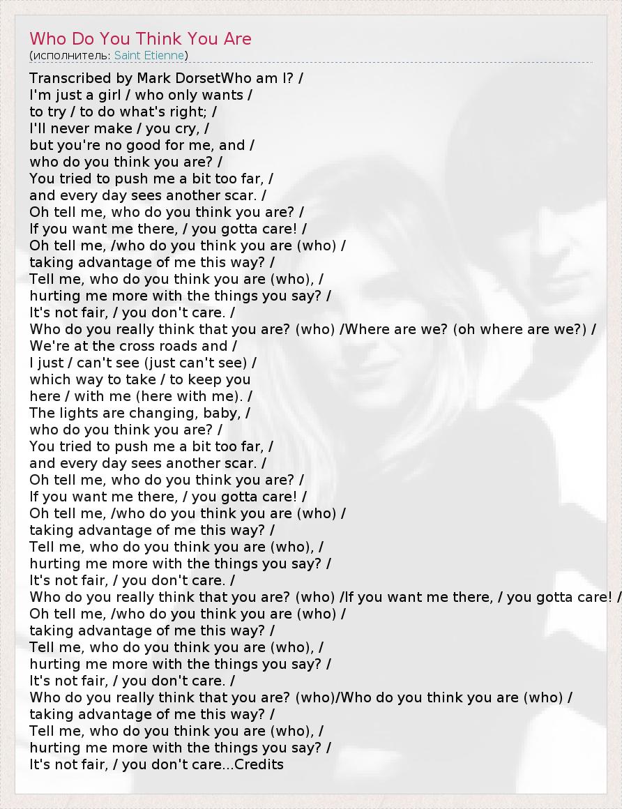 А как ты думаешь, о чем песня "Who Do You Think You Are" ?