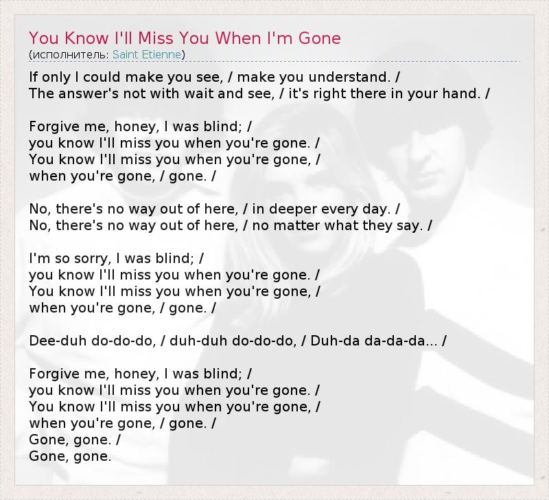 you know I'll miss you when you're gone. /