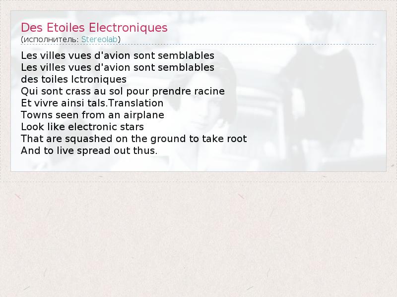 А как ты думаешь, о чем песня "Des Etoiles Electroniques" ?