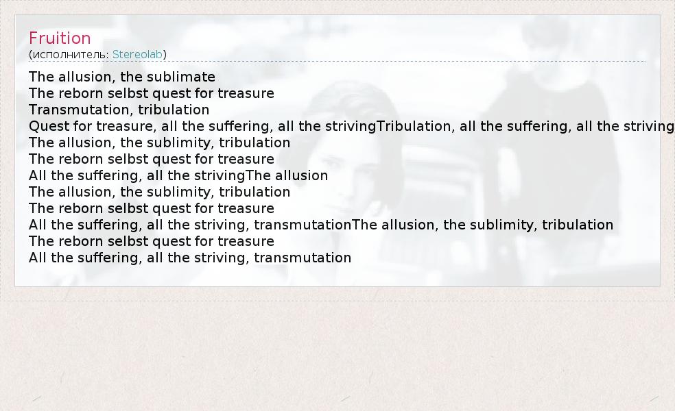 А как ты думаешь, о чем песня "Fruition" ?