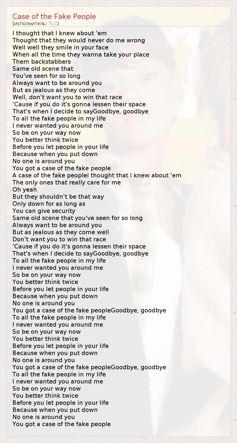 ГлавнаяИсполнителиTLCCase of the Fake People