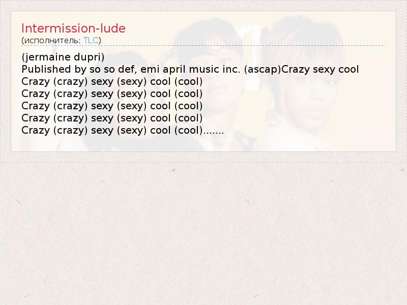 Published by so so def, emi april music inc. (ascap)Crazy sexy cool