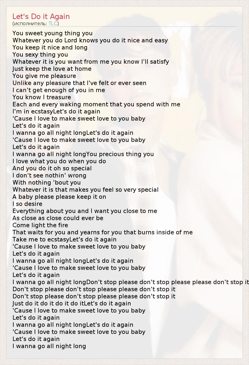 А как ты думаешь, о чем песня "Let's Do it Again" ?