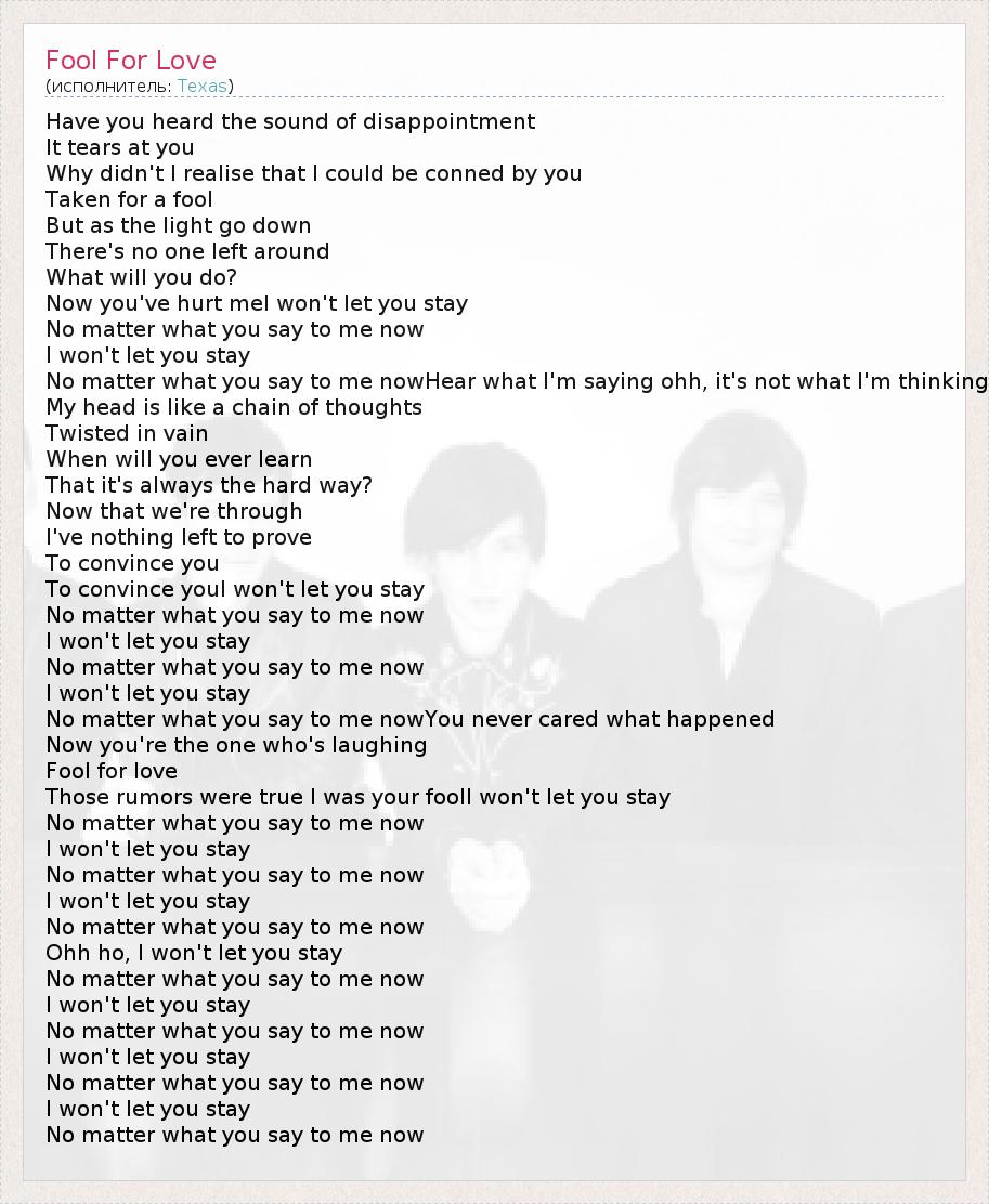 А как ты думаешь, о чем песня "Fool For Love" ?