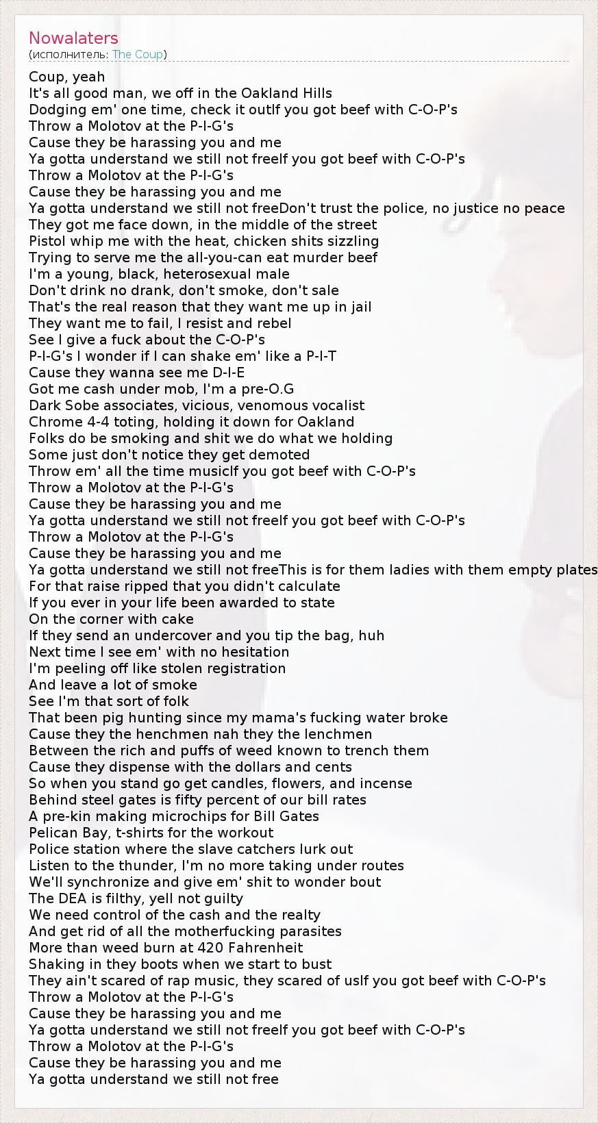 А как ты думаешь, о чем песня "Nowalaters" ?