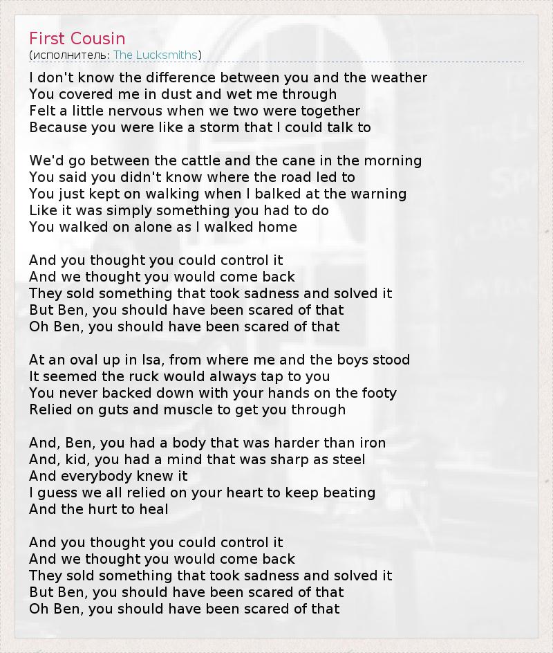 А как ты думаешь, о чем песня "First Cousin" ?
