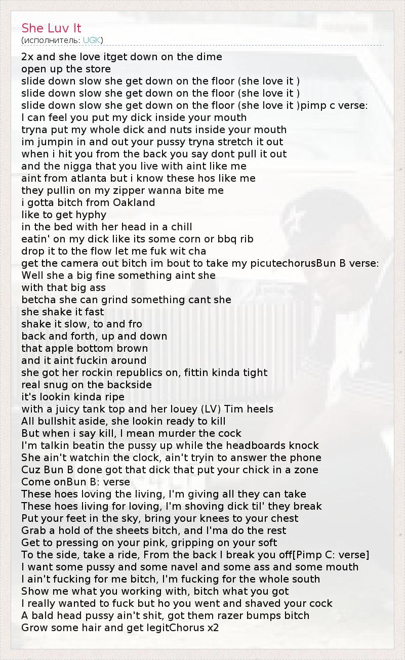slide down slow she get down on the floor (she love it )pimp c verse: