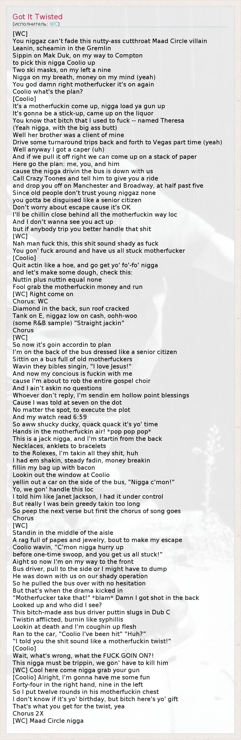 А как ты думаешь, о чем песня "Got It Twisted" ?