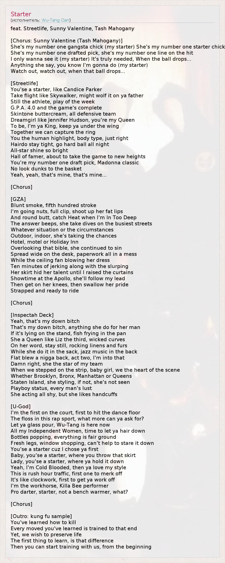 She's my number one gangsta chick (my starter) She's my number one starter chick