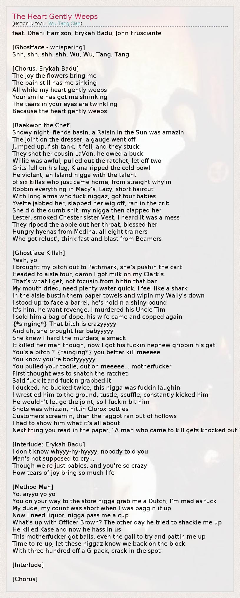 А как ты думаешь, о чем песня "The Heart Gently Weeps" ?