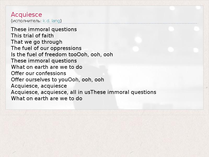 А как ты думаешь, о чем песня "Acquiesce" ?