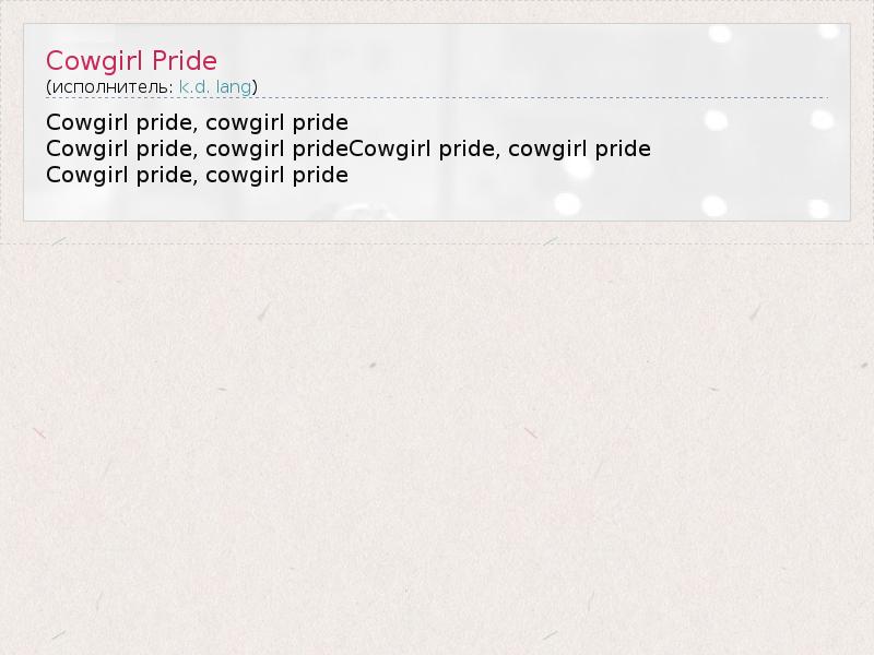А как ты думаешь, о чем песня "Cowgirl Pride" ?