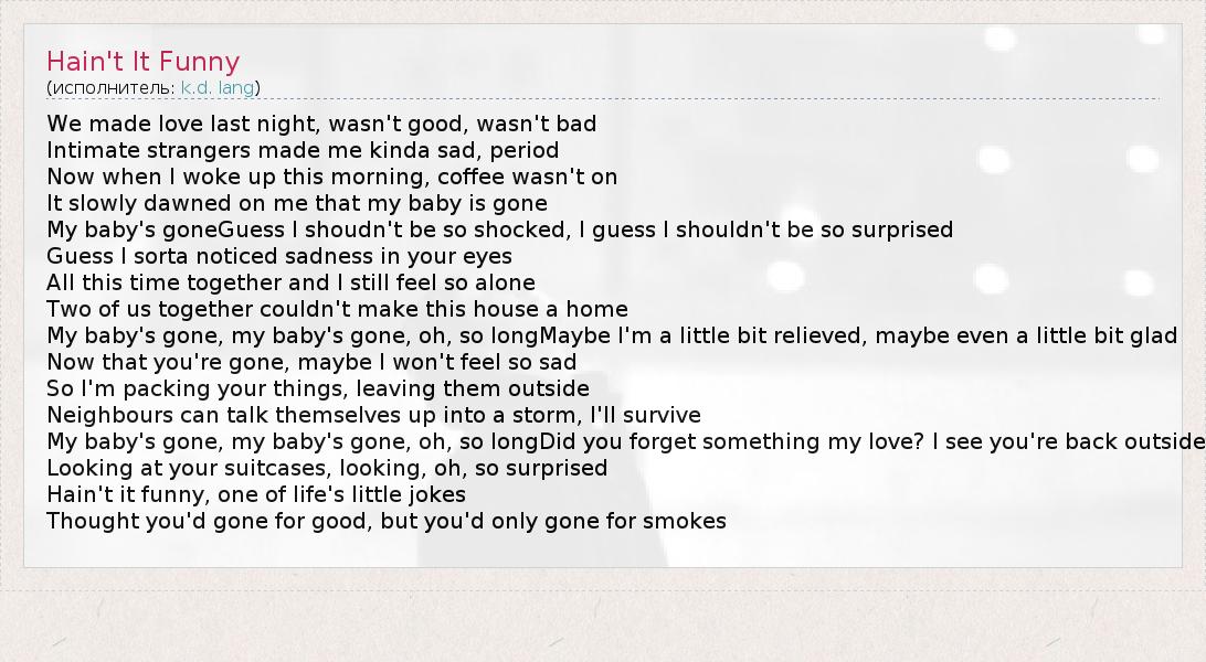 А как ты думаешь, о чем песня "Hain't It Funny" ?