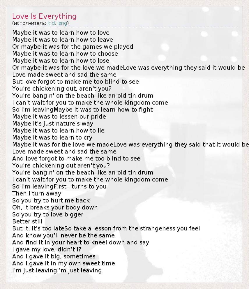 А как ты думаешь, о чем песня "Love Is Everything" ?