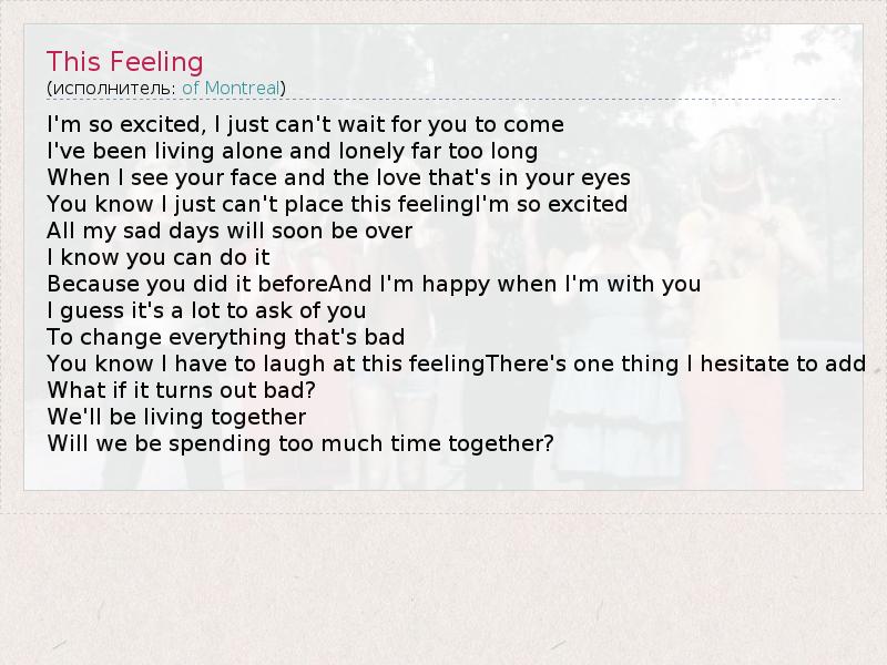 You know I have to laugh at this feelingThere's one thing I hesitate to add