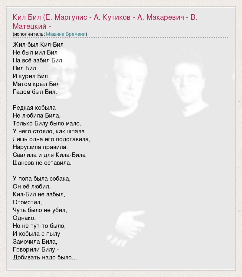 Кил Бил (Е. Маргулис - А. Кутиков - А. Макаревич - В. Матецкий -
