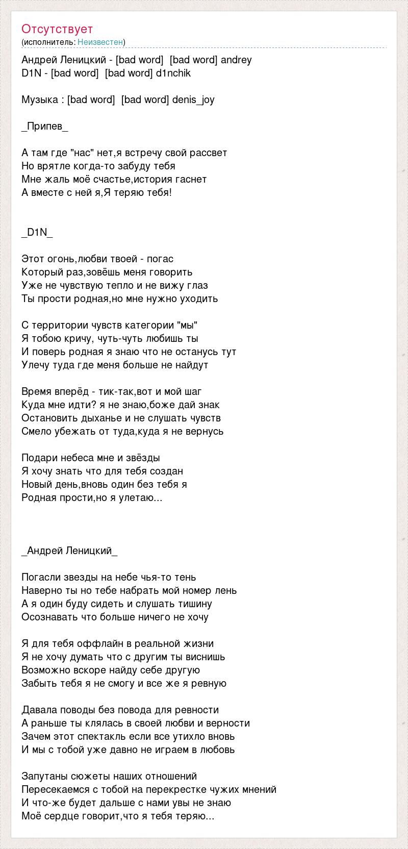 А как ты думаешь, о чем песня "Андрей Леницкий - [bad word] [bad word] andrey" ?