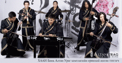 «Алтан Ураг» – это монгольский folk rock band. Команда была организована в 2003 году и включает в себя 6 человек, которые отлично владеют как старинными монгольскими инструментами, так и современными. В составе группы девушка барабанщица, два участника играющих на старинных монгольских инструмента «мориин хуур», стоит отметить, что струны этого инструмента сделаны из конского волоса.... продолжение