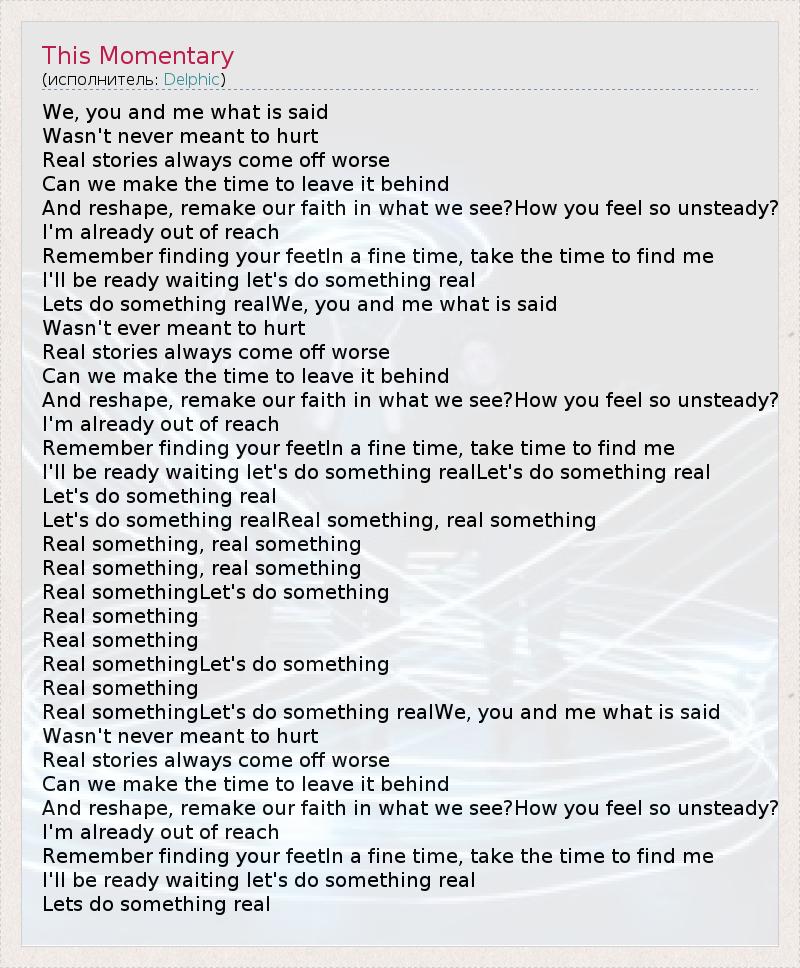 А как ты думаешь, о чем песня "This Momentary" ?