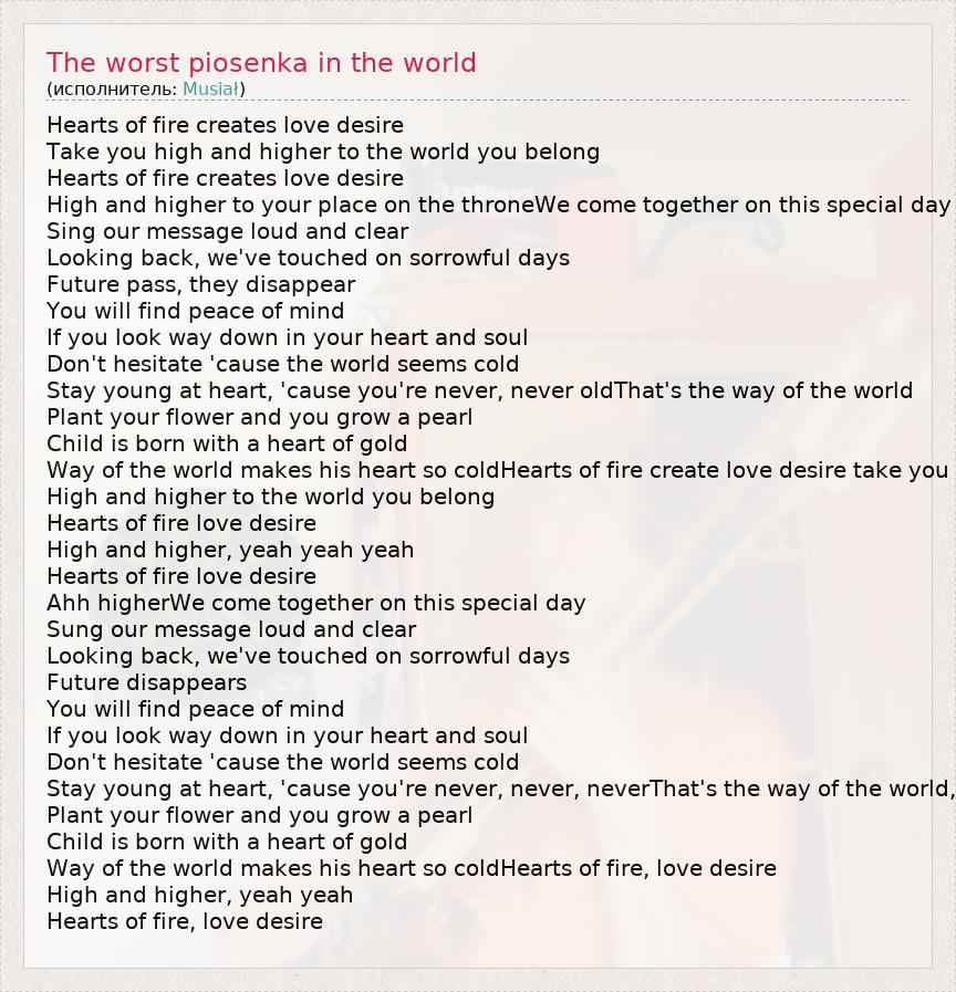 А как ты думаешь, о чем песня "The worst piosenka in the world" ?