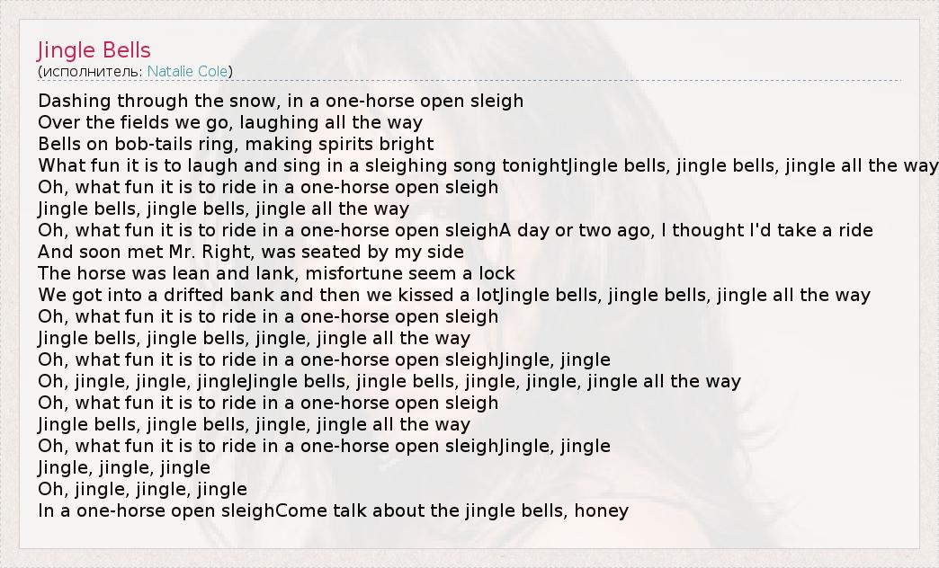 We got into a drifted bank and then we kissed a lotJingle bells, jingle bells, jingle all the way