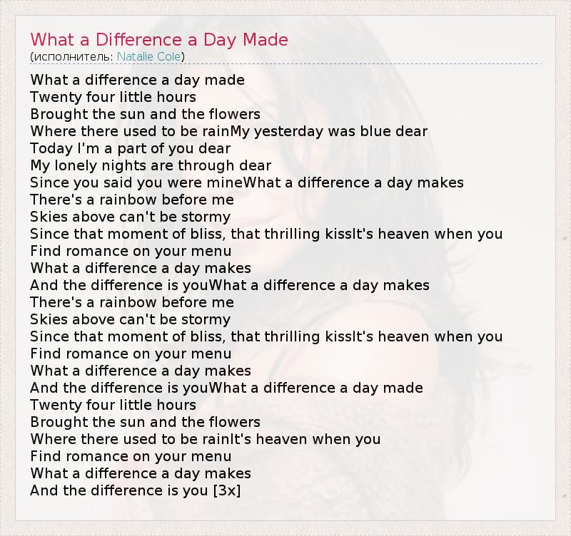 А как ты думаешь, о чем песня "What a Difference a Day Made" ?