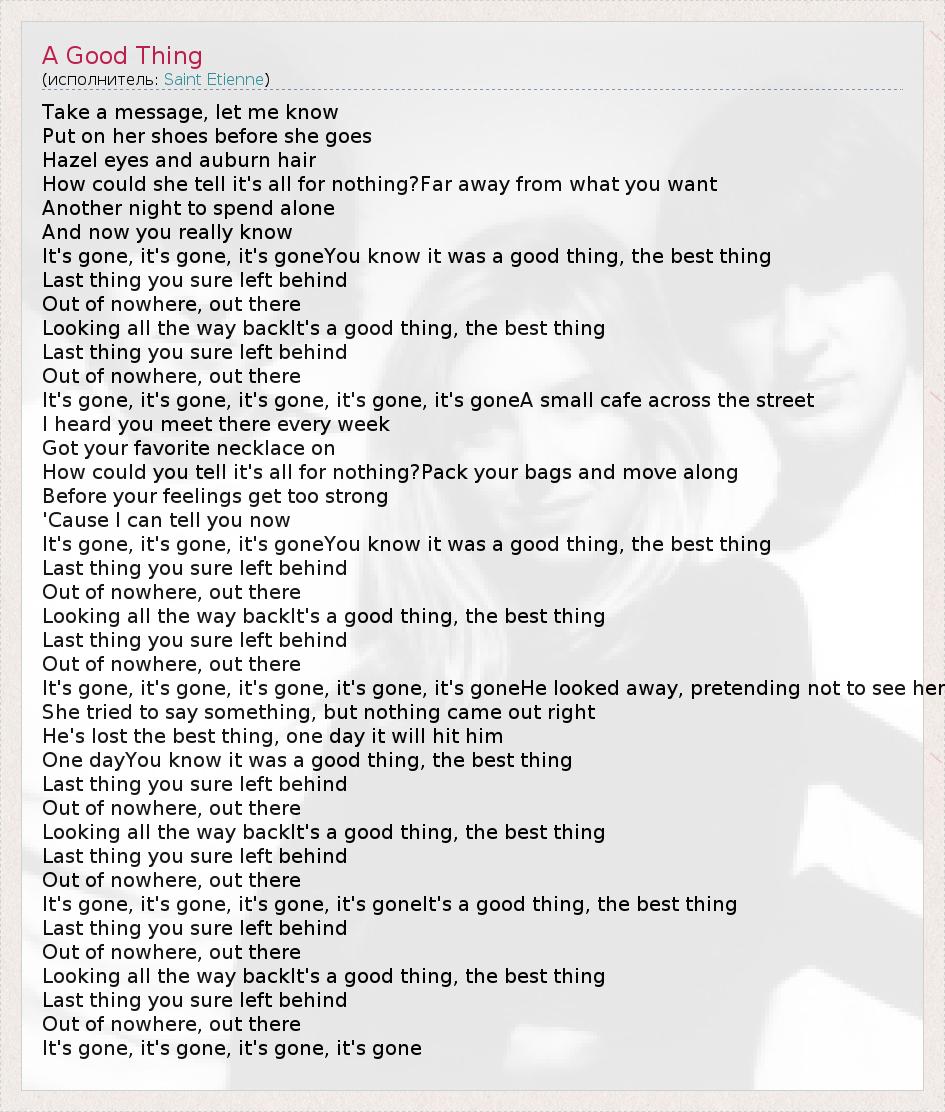 А как ты думаешь, о чем песня "A Good Thing" ?