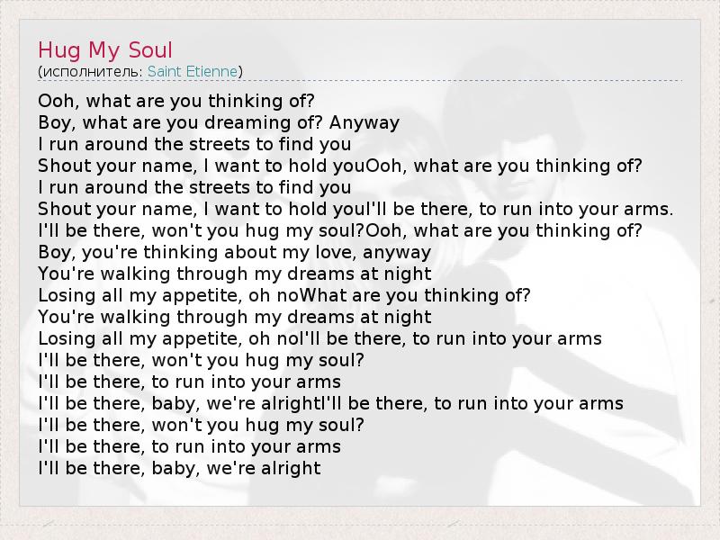 I'll be there, won't you hug my soul?Ooh, what are you thinking of?