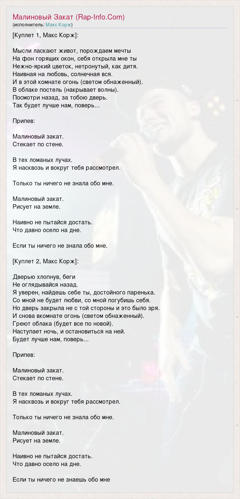 А как ты думаешь, о чем песня "[Куплет 1, Макс Корж]:" ?