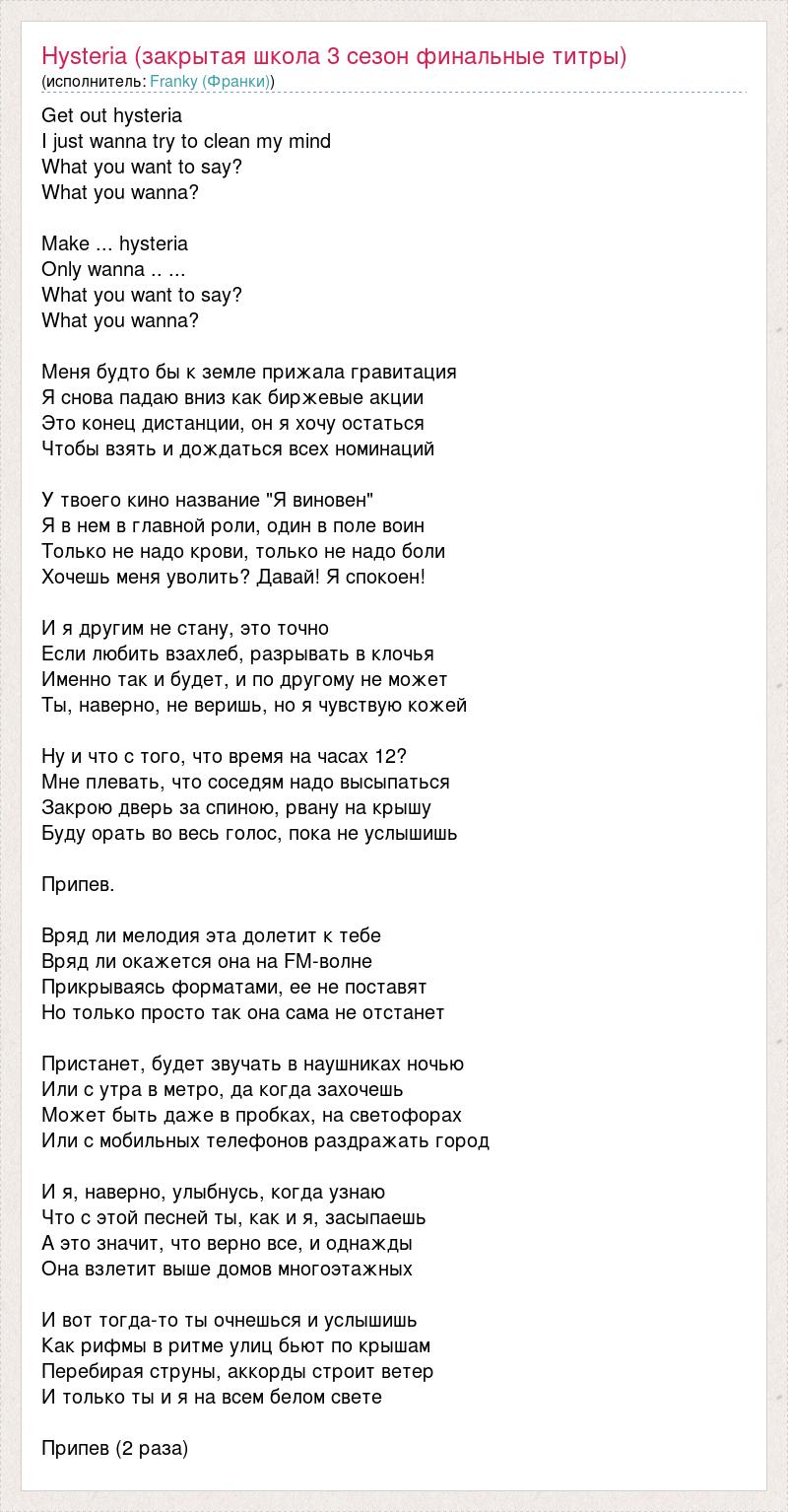 А как ты думаешь, о чем песня "Get out hysteria" ?