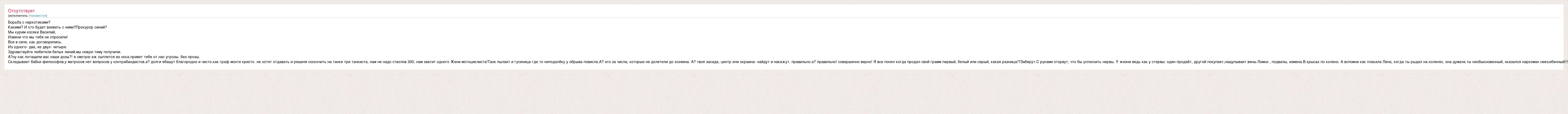 Борьба с наркотиками? Какими? И кто будет воевать с ними?Прокурор синий? Мы курим косяки Василий, Извени что мы тебя не спросили! Все в силе, как договорились. Из одного- два, из двух- четыре. Здравствуйте любители белых линий,мы новую тему получили. А?ну как потащили вас наши дозы?! я смотрю аж сыплется из носа.привет тебе от нас угрозы. без прозы. Складывает бабки философов,у матросов нет вопросов у контрабандистов.а? долги ебашут благородно и чисто.как граф монте кристо. не хотят отдавать и решили соскочить на танке три танкиста, нам не надо стволов 300, нам хватит одного Жени мотоциклиста!Танк пылает и гусеница где то неподалёку у обрыва повисла.А? это за числа, которые не долетели до хозяина. А? твоя засада, центр или окраина- найдут и накажут. правильно.а? правильно! совершенно верно! Я все понял когда продал свой грамм первый, белый или серый, какая разница!?Заберут.С руками оторвут, что бы успокоить нервы. У жизни ведь как у стервы: один продаёт, другой покупает,нащупывает вены.Ломки , подвалы, измена.В крысах по колено. А вспомни как плакала Лена, когда ты рыдал на коленях, она думала ты необыкновенный, оказался наркоман невъебенный!!!