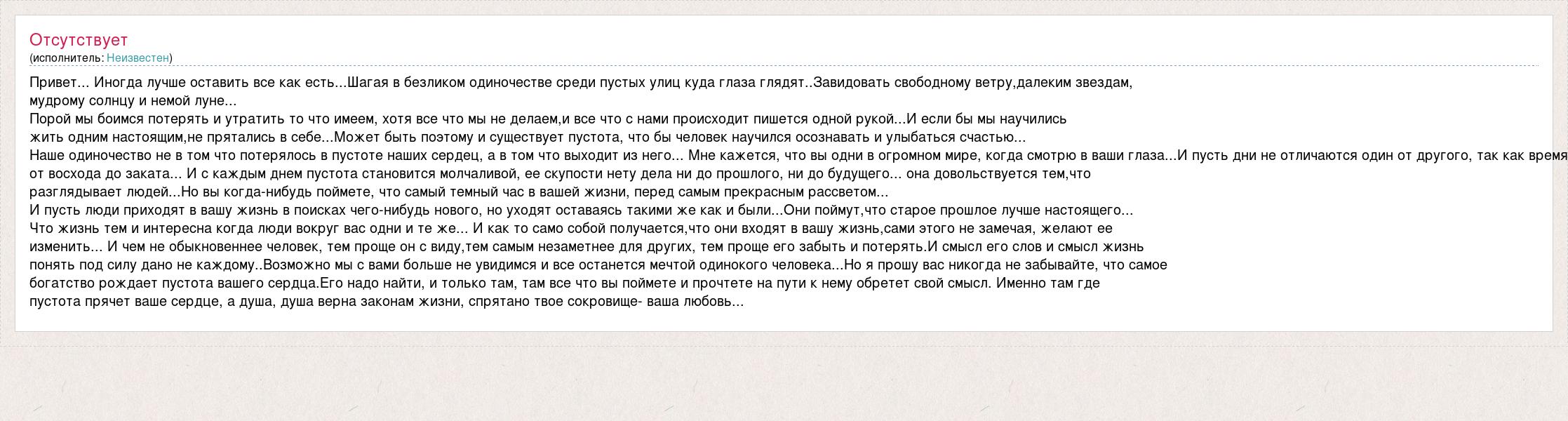 Главная→Исполнители→Неизвестен→Привет... Иногда лучше оставить все как есть...Шагая в безликом одиноч