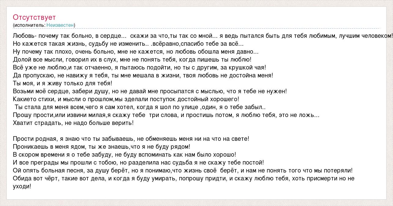 Главная→Исполнители→Неизвестен→Любовь- почему так больно, в сердце... скажи за что,ты так со мной... я ведь