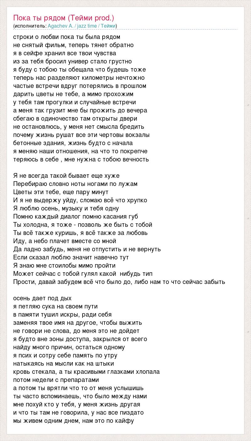 строки о любви пока ты была рядом