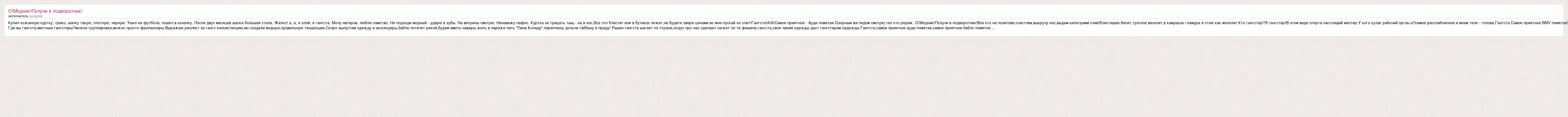 Купил кожанную куртку, трико, шапку такую, плотную, черную. Ушел из футбола, пошел в качалку. После двух месяцев шапка большая стала. Жалко! а, а, я злой, я гангста. Мочу нигеров, люблю хамство. Не подходи модный - ударю в зубы. На витрины смотрю. Ненавижу пафос. Куртка за трицать тыщ - на в нос.Все что блестит или в бутиках лежит,не будите зверя ценами во мне-пускай он спит!Гангста!А!А!Самое приятное - Ауди помятая.Озорным взглядом смотрю,тех кто рядом...О!Модник!Получи в подворотник!Все кто на позитеве,счастлив,выкручу нос,выдам килограмм слив!Блестящее бесит,тусклое веселит,в камушках гламура я стою как монолит.Кто гангстер?Я гангстер!В этом виде спорта настоящий мастер.У кого кулак рабочий орган,а?самое расслабленное в моем теле - голова.Гангста.Самое приятное BMV помятое! Где вы гангста,местные гангстеры?можно группировки,можно просто фрилансеры.Выражаю респект за гангс консистенцию,мо создали модную,правильную тенденцию.Скоро выпустим одежду и акссесуары,бабло потечет рекой,будем иметь навары,жить в париже пить "Пина Коладу" переплюну дольче габбану и праду! Рашен гангста шагает по стране,скоро про нас сделают сюжет по тв фешили,гангста,своя линия одежды даст гангстерам надежды.Гангста,самое приятное ауди помятая,самое приятное бабло помятое ...