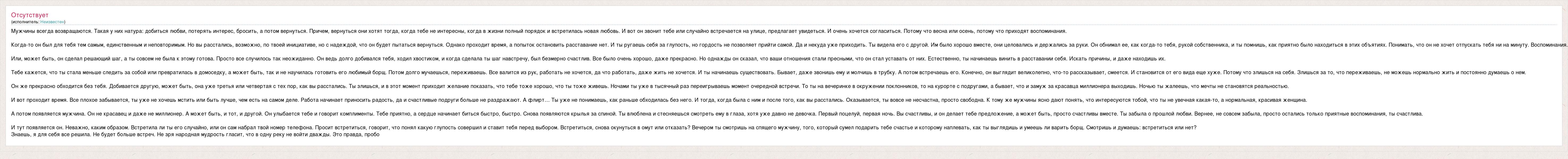 Главная→Исполнители→Неизвестен→Мужчины всегда возвращаются. Такая у них натура: добиться любви, потерять