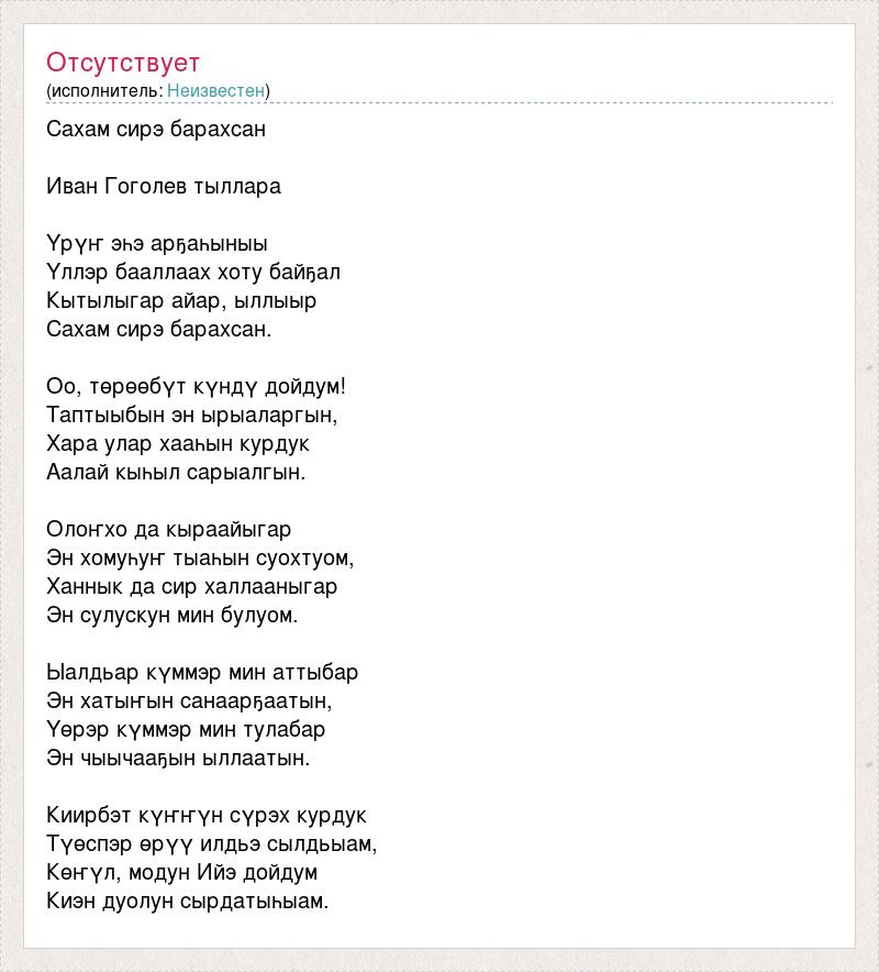 А как ты думаешь, о чем песня "Сахам сирэ барахсан" ?