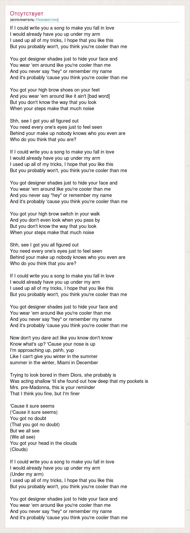 А как ты думаешь, о чем песня "If I could write you a song to make you fall in love" ?