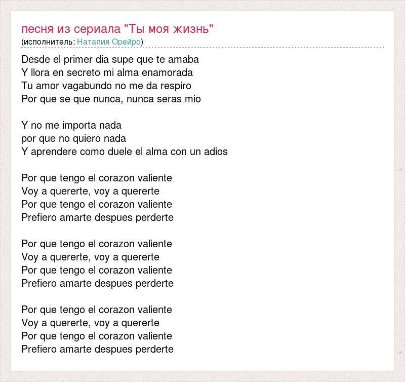 Desde el primer dia supe que te amaba Y llora en secreto mi alma enamorada Tu amor vagabundo no me da respiro Por que se que nunca, nunca seras mio Y no me importa nada por que no quiero nada Y aprendere como duele el alma con un adios Por que tengo el corazon valiente Voy a quererte, voy a quererte Por que tengo el corazon valiente Prefiero amarte despues perderte Por que tengo el corazon valiente Voy a quererte, voy a quererte Por que tengo el corazon valiente Prefiero amarte despues perderte Por que tengo el corazon valiente Voy a quererte, voy a quererte Por que tengo el corazon valiente Prefiero amarte despues perderte