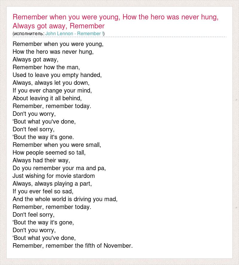 А как ты думаешь, о чем песня "Remember when you were young" ?