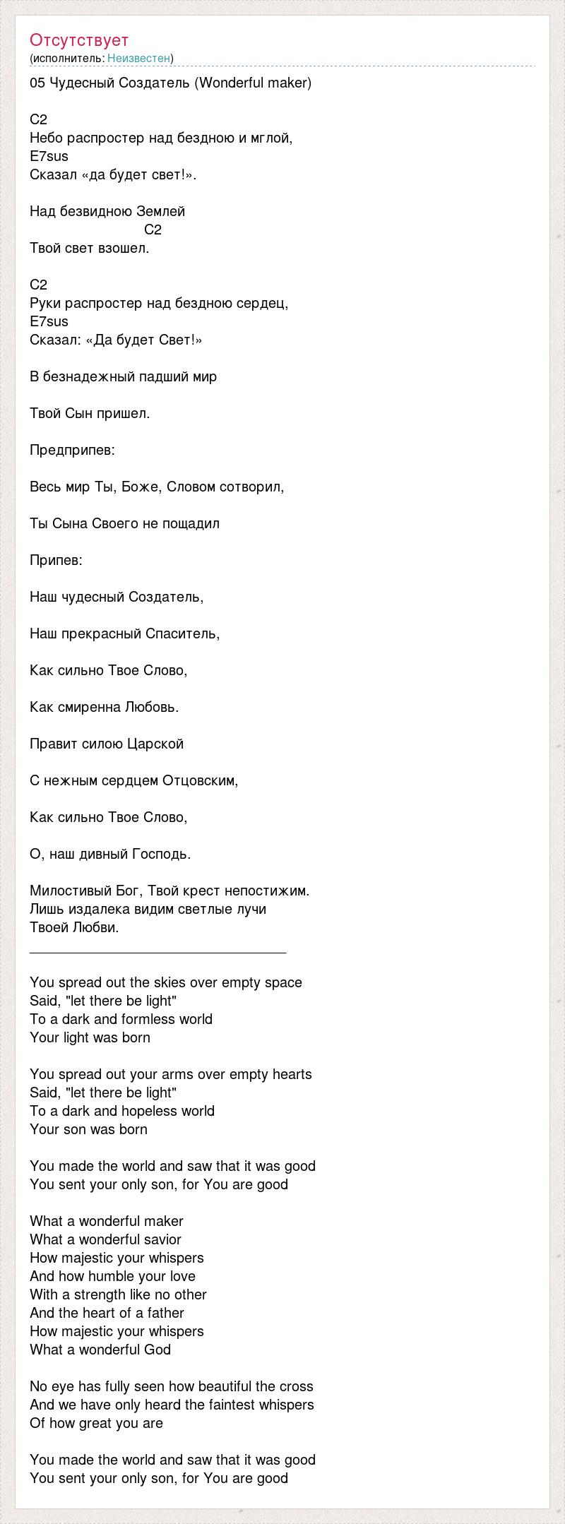 А как ты думаешь, о чем песня "05 Чудесный Создатель (Wonderful maker)" ?