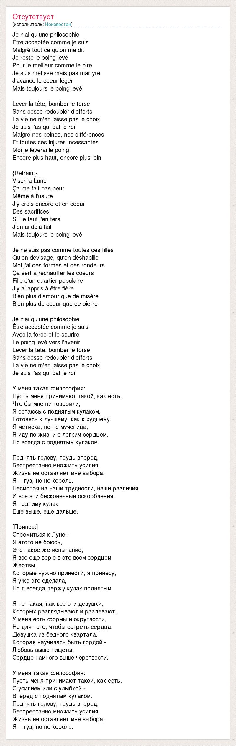 А как ты думаешь, о чем песня "Je n'ai qu'une philosophie" ?