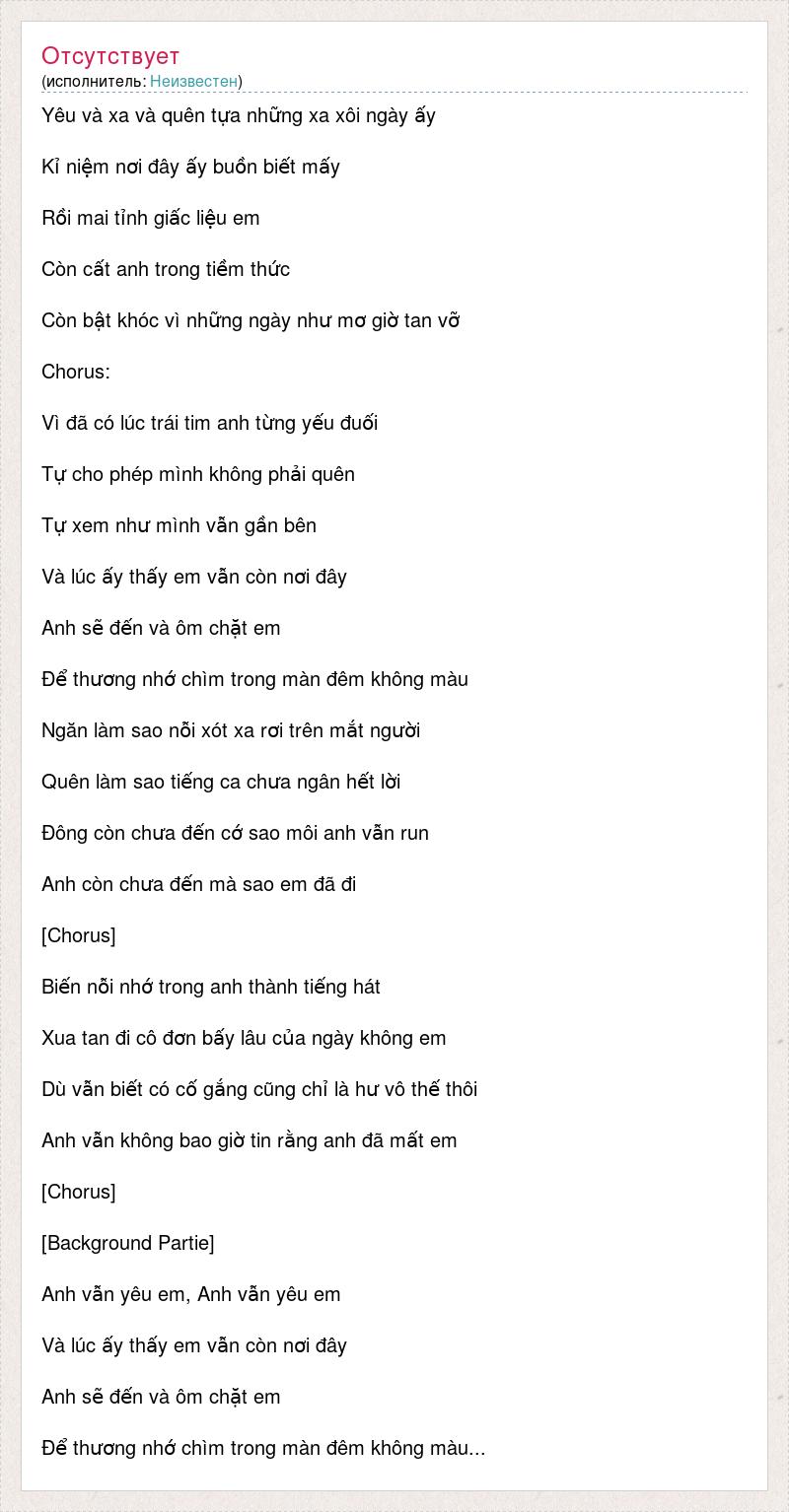 А как ты думаешь, о чем песня "Yêu và xa và quên tựa những xa xôi" ?