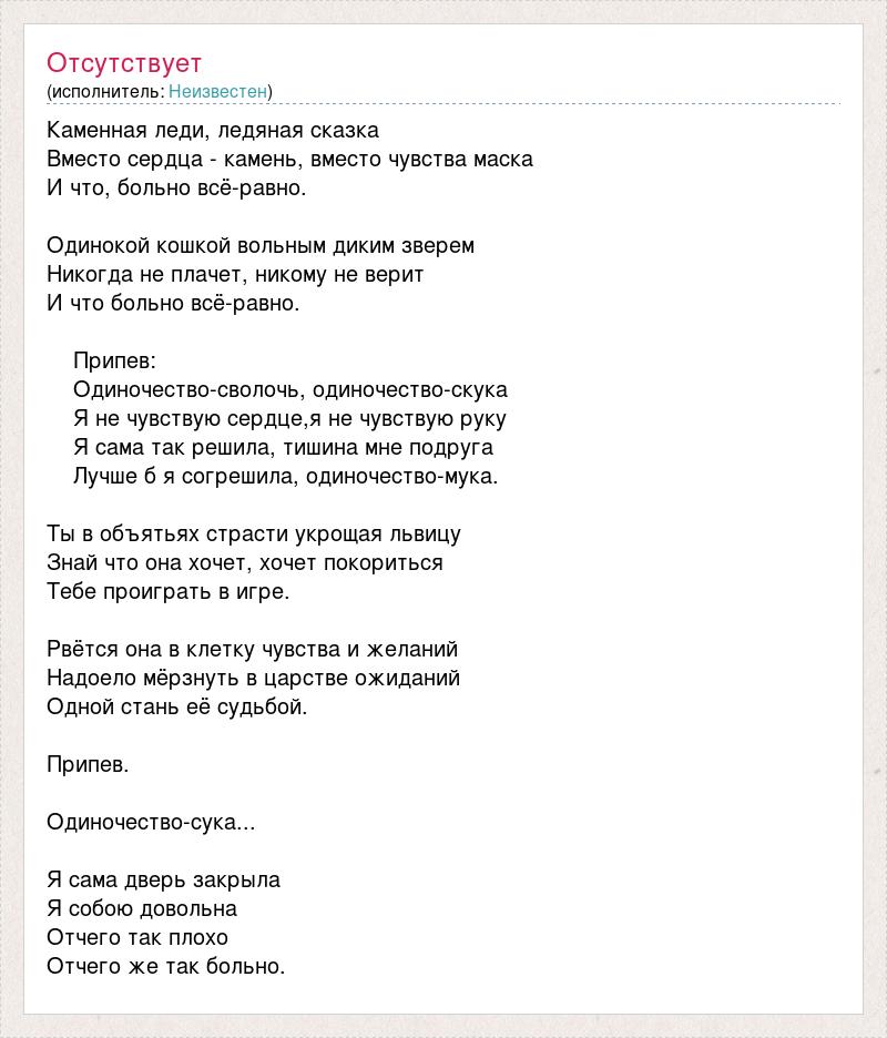 А как ты думаешь, о чем песня "Каменная леди, ледяная сказка" ?