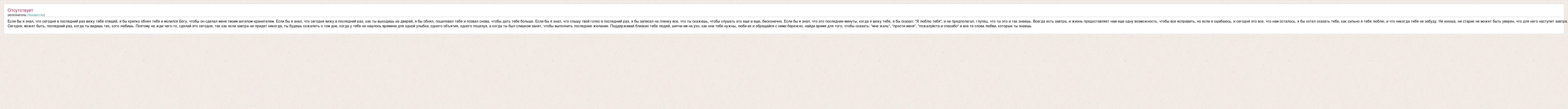 Если бы я знал, что сегодня в последний раз вижу тебя спящей, я бы крепко обнял тебя и молился Богу, чтобы он сделал меня твоим ангелом-хранителем. Если бы я знал, что сегодня вижу в последний раз, как ты выходишь из дверей, я бы обнял, поцеловал тебя и позвал снова, чтобы дать тебе больше. Если бы я знал, что слышу твой голос в последний раз, я бы записал на пленку все, что ты скажешь, чтобы слушать это еще и еще, бесконечно. Если бы я знал, что это последние минуты, когда я вижу тебя, я бы сказал: "Я люблю тебя", и не предполагал, глупец, что ты это и так знаешь. Всегда есть завтра, и жизнь предоставляет нам еще одну возможность, чтобы все исправить, но если я ошибаюсь, и сегодня это все, что нам осталось, я бы хотел сказать тебе, как сильно я тебя люблю, и что никогда тебя не забуду. Ни юноша, ни старик не может быть уверен, что для него наступит завтра. Сегодня, может быть, последний раз, когда ты видишь тех, кого любишь. Поэтому не жди чего-то, сделай это сегодня, так как если завтра не придет никогда, ты будешь сожалеть о том дне, когда у тебя не нашлось времени для одной улыбки, одного объятия, одного поцелуя, и когда ты был слишком занят, чтобы выполнить последнее желание. Поддерживай близких тебе людей, шепчи им на ухо, как они тебе нужны, люби их и обращайся с ними бережно, найди время для того, чтобы сказать: "мне жаль", "прости меня", "пожалуйста и спасибо" и все те слова любви, которые ты знаешь.