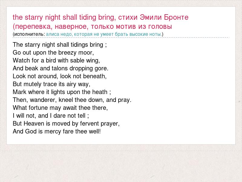 The starry night shall tiding bring, стихи Эмили Бронте (перепевка, нав
